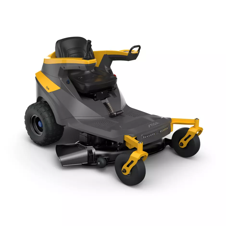 STIGA GYRO 500e AKKU AXIALMÄHER – Kompakter und sehr wendiger Akku Axialmäher mit einer Schnittbreite von 98 cm im markanten Design. Angetrieben wir der Stiga Gyro 500e über einen 48 Volt Elektromotor mit einer Leistung von 4,7 kW und variabler elektrischer Kraftübertragung, ist der Stiga Gyro 500e der ideale Akku Axialmäher für Rasenflächen, bis zu 5000 m².
