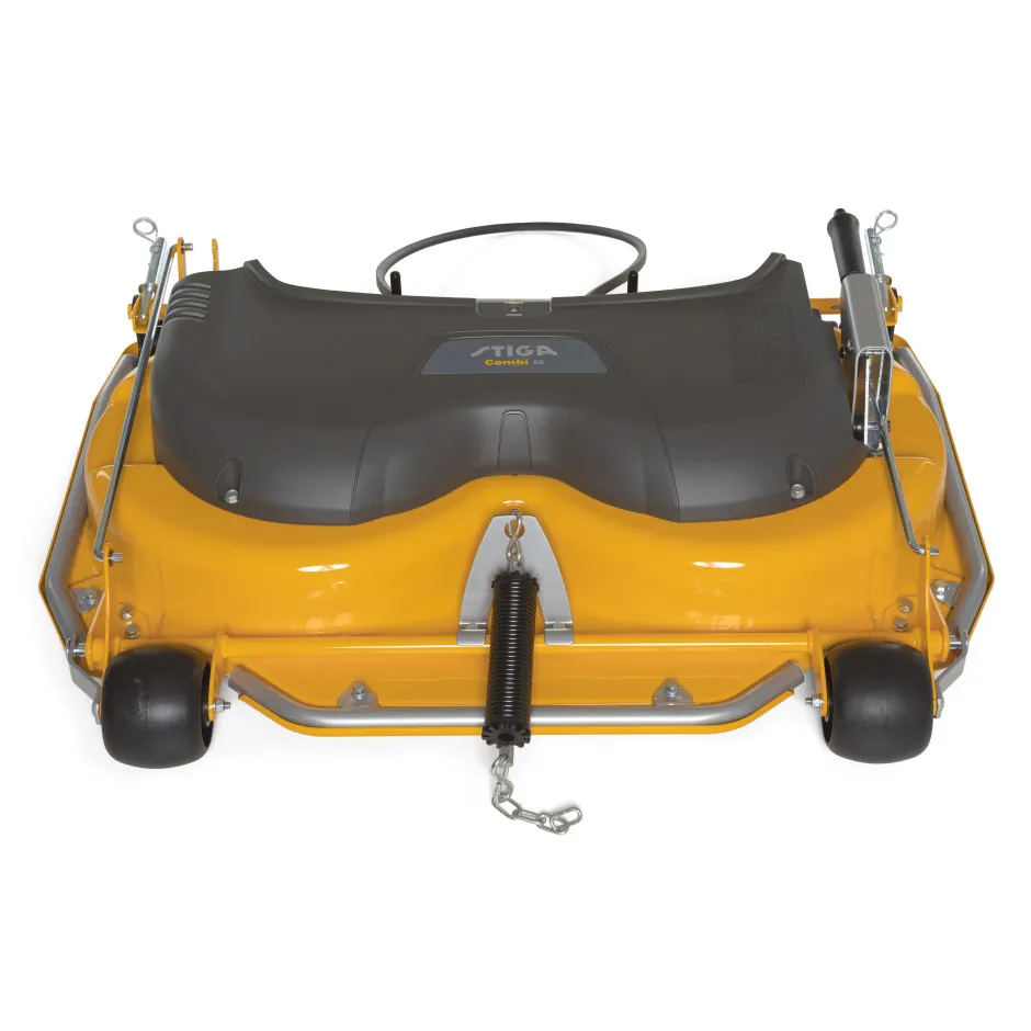 STIGA VILLA 95 COMBI – Schmales Stiga Villa 95 cm Mähwerk für Stiga Villa 12,14 und 16 Frontmäher. Das Stiga Villa Mähdeck Combi 95 ist sehr gut ausgestattet. Die breiten Laufrollen am Frontmähwerk schonen die Rasenfläche und runden die gehobene Ausstattung perfekt ab.